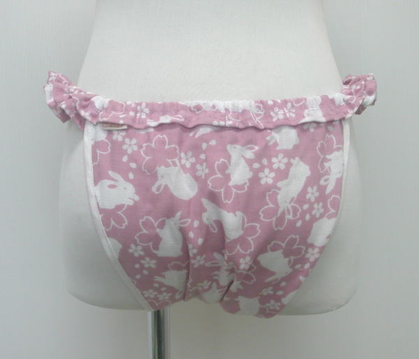締付けないショーツ うさぎ 価格 1,800円 (税込 1,980円) 商品番号:L Mサイズ ウエスト76cm〜84cm Lサイズ ウエスト84cm〜94cm 画像Mサイズ着用 ローライズ2本紐(浅め) Mサイズ=長さ49cm前幅22cm後幅25cm紐140cmクロッチあり Lサイズ=長さ53cm前幅22cm後幅25cm紐140cmクロッチあり 縫い止めタイプ1本紐(深め) Mサイズ=長さ52cm前幅22cm後幅25cm紐140cmクロッチあり Lサイズ=長さ56cm前幅22cm後幅25cm紐140cmクロッチあり
